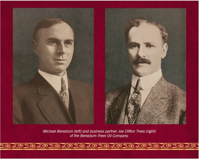Mike Benedum and Joe Trees remained business partners for nearly half a century, until the latter's death in 1943. Both acquired massive fortunes in the oil business, becoming multimillionaires in less than 10 years. They made oil discoveries throughout the United States and in countries all over the world.
