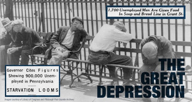 The Great Depression hit Allegheny County hard. The unemployment rate was 31.2% in 1931. Steel mills were operating at 46% average capacity, with a low of 25% in December 1930. The crisis of widespread joblessness was crushing many families and communities. Shantytowns of unemployed people sprang up in the Strip District, on Banksville Road, and in other locations around the city.In February 1931, Allegheny County business and civic leaders approved a jobs project called The Pittsburgh Plan. The goal was to raise $3 million to hire 20,000 unemployed local residents for public works projects such as paving roads and repairing and improving sidewalks, sewers, potholes and park entrances. Construction and repair work would benefit more than seventy towns and boroughs all over the county, as well as improving the facilities of hospitals, museums, libraries and charitable institutions.