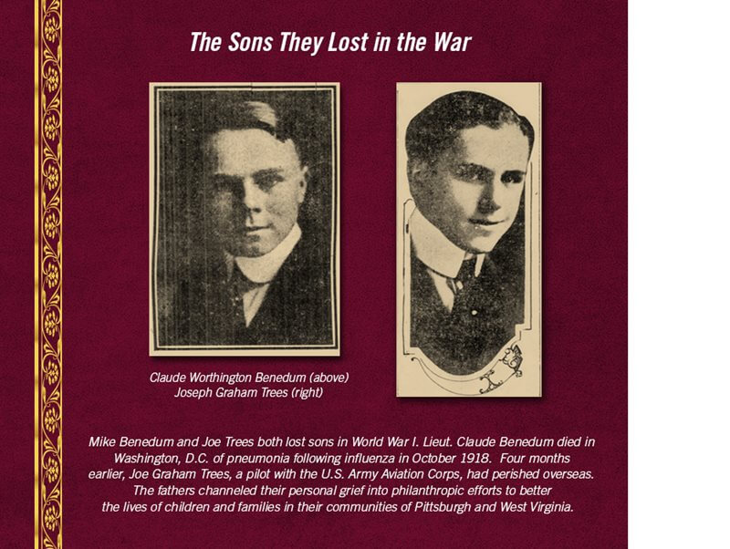 Benedum and his wife Sarah started the Claude Worthington Benedum Foundation in 1944, in honor of their only son, who had died in 1918. True to his roots, Benedum focused the Foundation's charitable efforts on his home state of West Virginia, and his adopted home of Pittsburgh. To date, the Claude Worthington Benedum Foundation has authorized more than $400 million in grants to education, economic and community development, and health and human services programs in those regions.